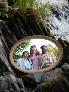 Wardrobe and props by Emma Cole (Charlatan Designs). Hairstyling by Emyn Hayden. Photography and direction by Kate Clow. Models: Violet, Julia, and Mallaidh. July 2025.
